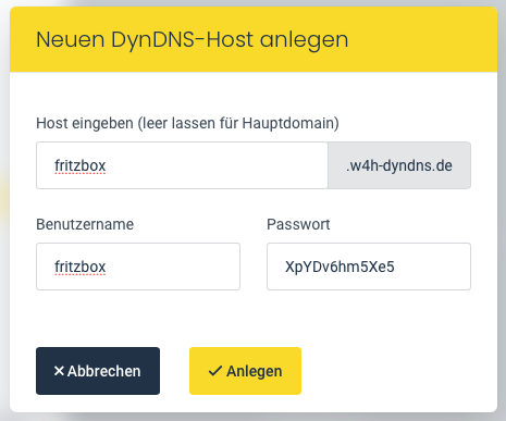 Zum Abschluss klicken Sie auf "Anlegen", um den neuen DynDNS-Host anzulegen.
